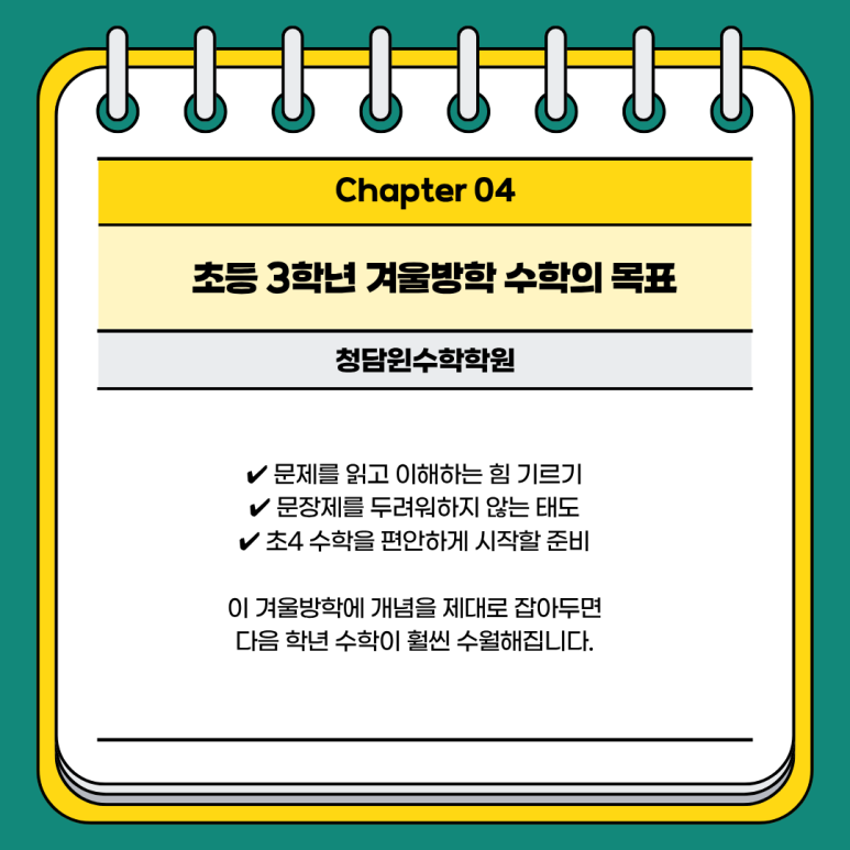 청담윈수학학원 - 초등 3학년 겨울방학 수학 준비법 -