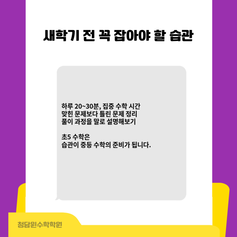 습관이 중등 수학의 준비가 됩니다.