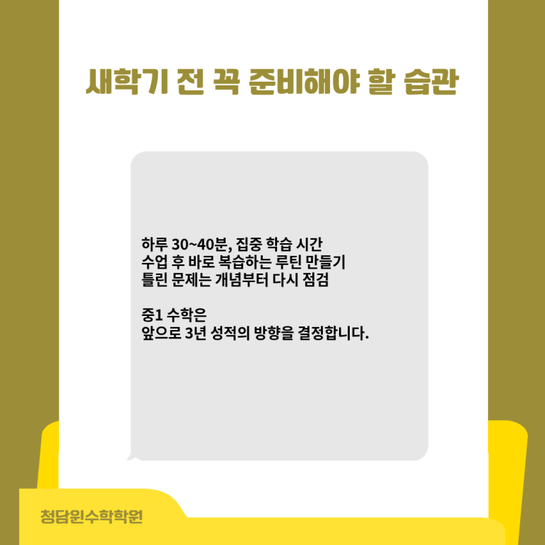 강남구청역 수학학원- 청담윈수학학원 중등 1학년 새학기 준비