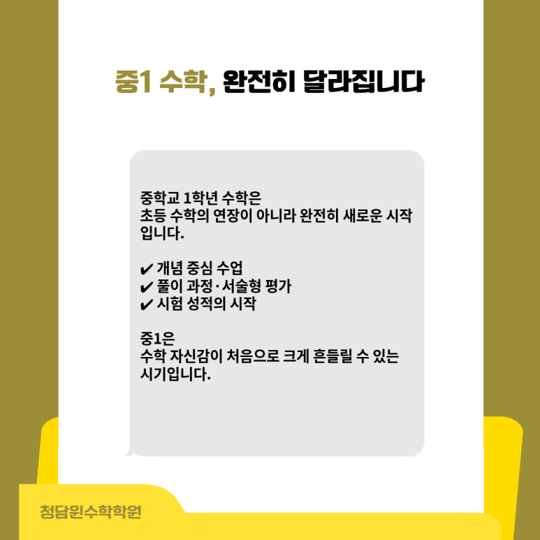 수학 자신감이 처음으로 크게 흔들릴 수 있는 시기입니다.