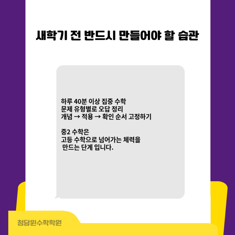 강남구청역 수학학원- 청담윈수학학원 중등 2학년 새학기 준비