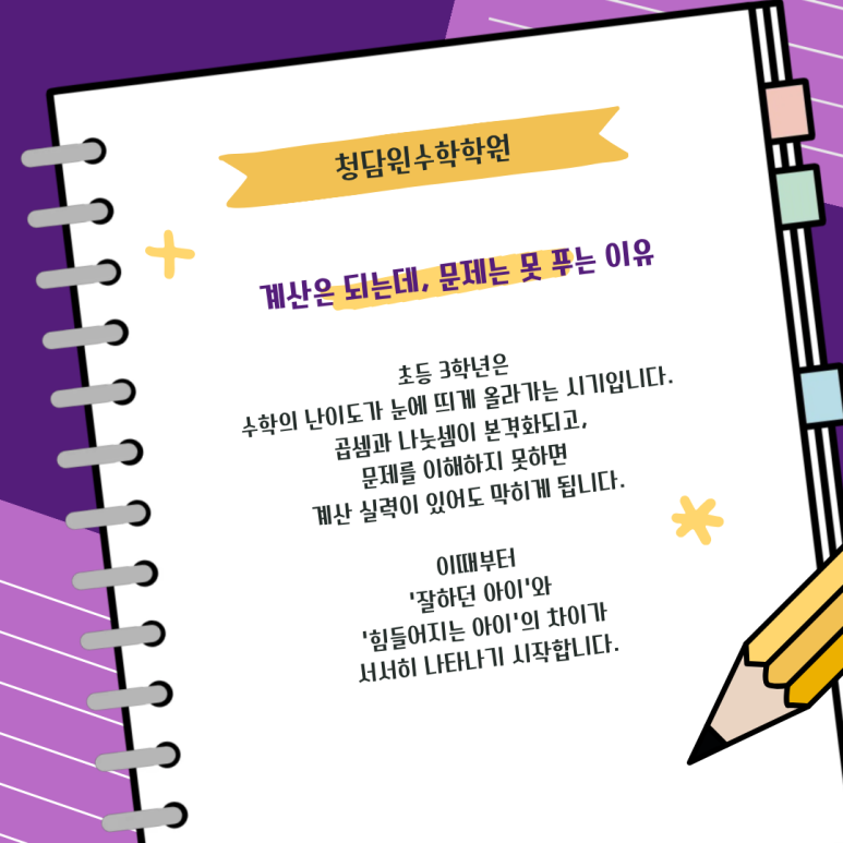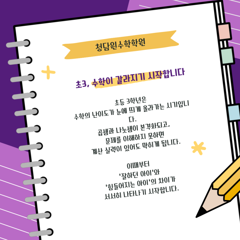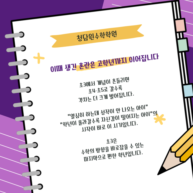 강남구청역 수학학원 - 청담윈수학학원 초등 3학년 개강 준비