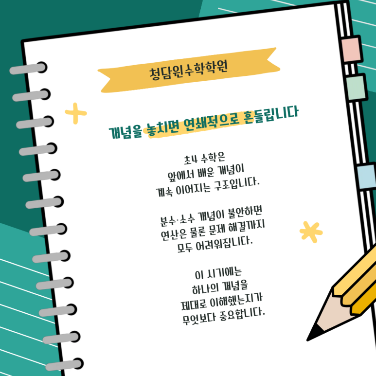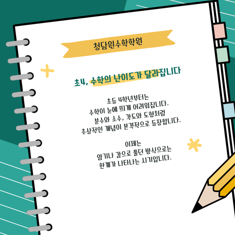 강남구청역 수학학원 - 청담윈수학학원 초등 4학년 개강 준비