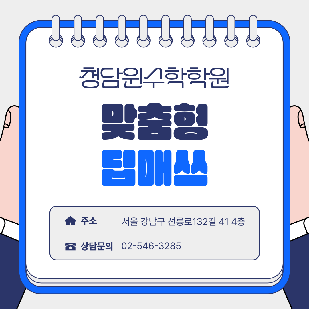 - 위치: 청담윈수학학원 (서울 강남구 선릉로132길 41 4층)