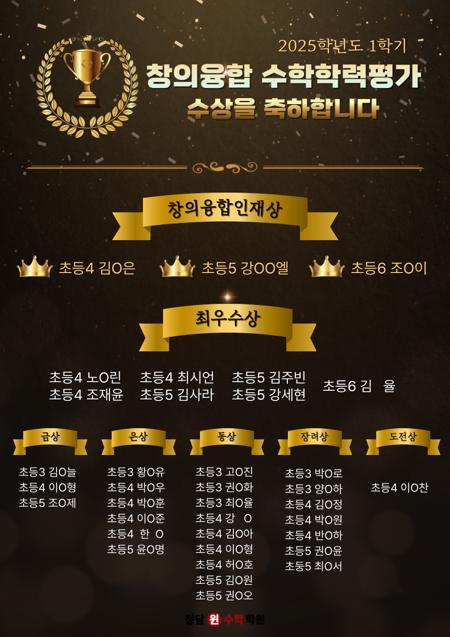 청담윈수학학원, 미래엔수학 창의융합평가 수상 소식 전해드립니다!