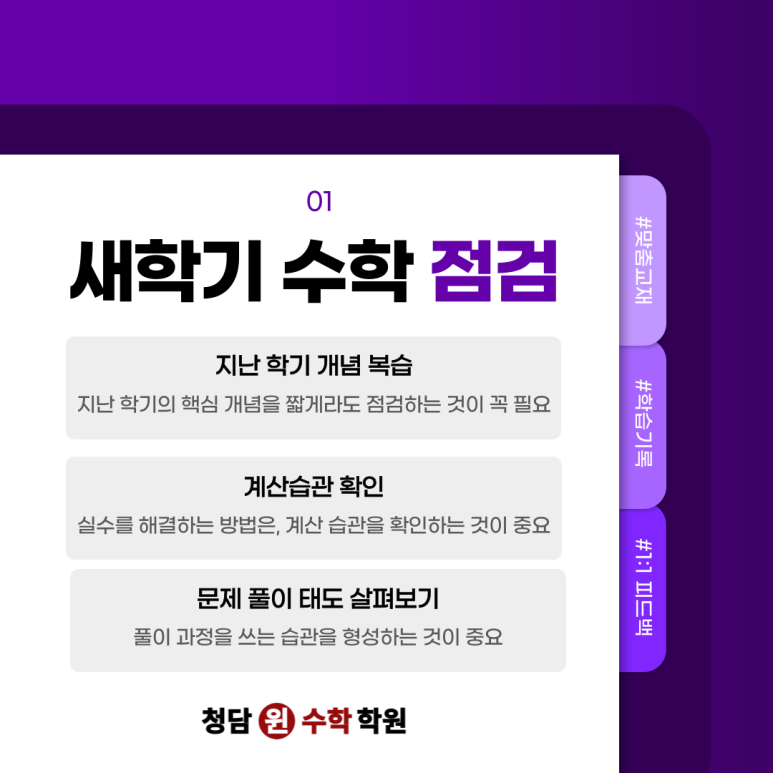 오늘은 새 학기를 맞아, 우리 아이들이 수학을 효과적으로 점검하고 공부할 수 있는 방법을 알려드리겠습니다!