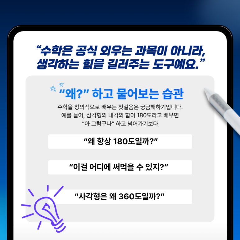 수학을 창의적으로 배우는 첫걸음은 '궁금해하기' 입니다.