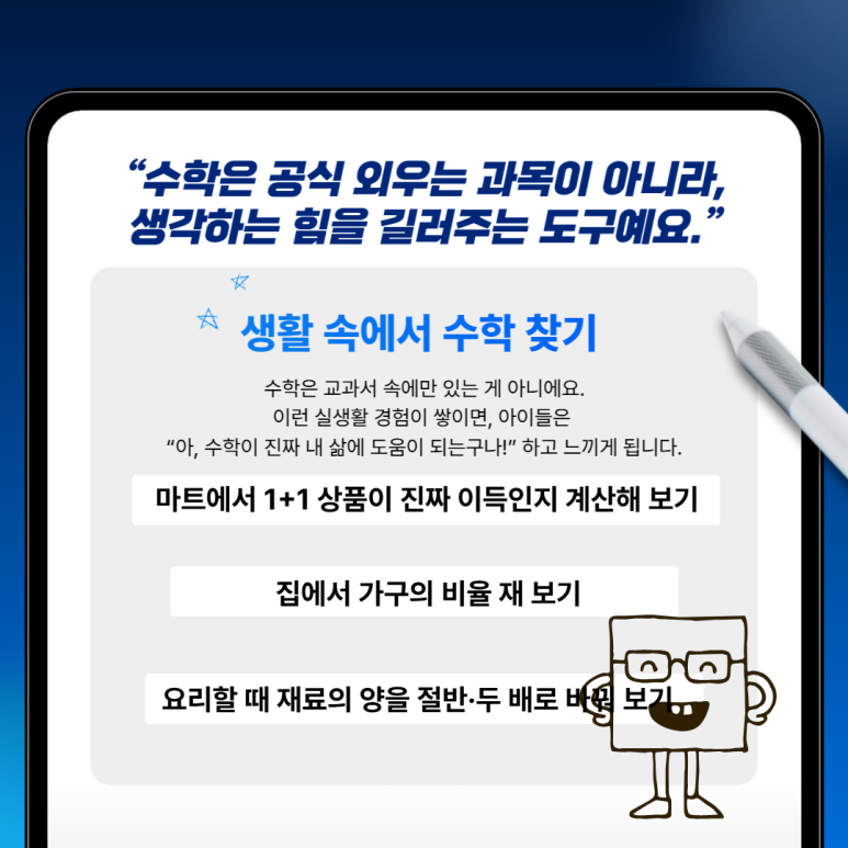 “아, 수학이 진짜 내 삶에 도움이 되는구나!” 하고 느끼게 됩니다.