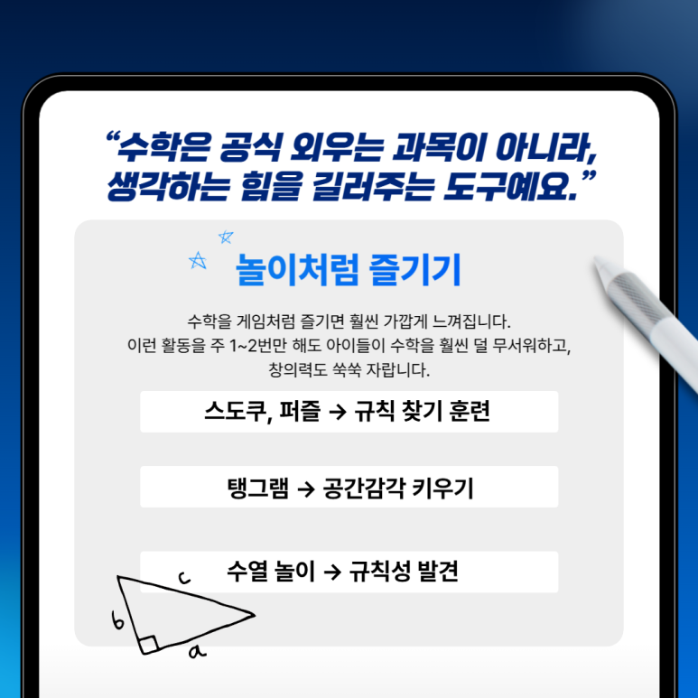 수학을 게임처럼 즐기면 훨씬 가깝게 느껴집니다.