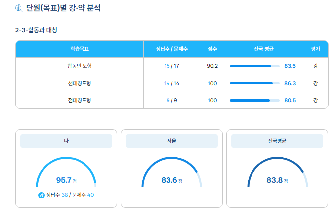 예를 들어 합동과 대칭 단원에서 강OOO 학생은
