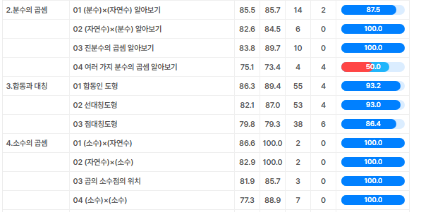 단원 속 유형별 성취도까지