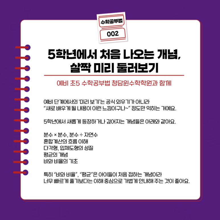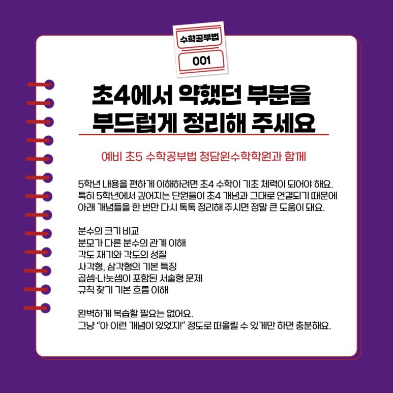 청담 윈 수학학원 - 예비 초등 5학년 수학, 준비 가이드 -