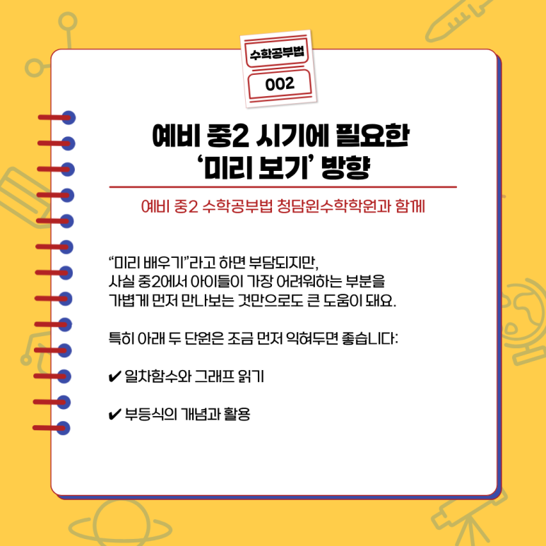 예비 중2 시기에는 아래 두 가지를 꼭 체크해 주세요