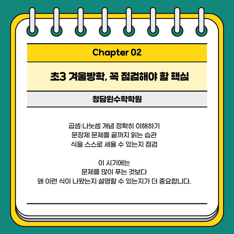 청담윈수학학원 - 초등 3학년 겨울방학 수학 준비법 -