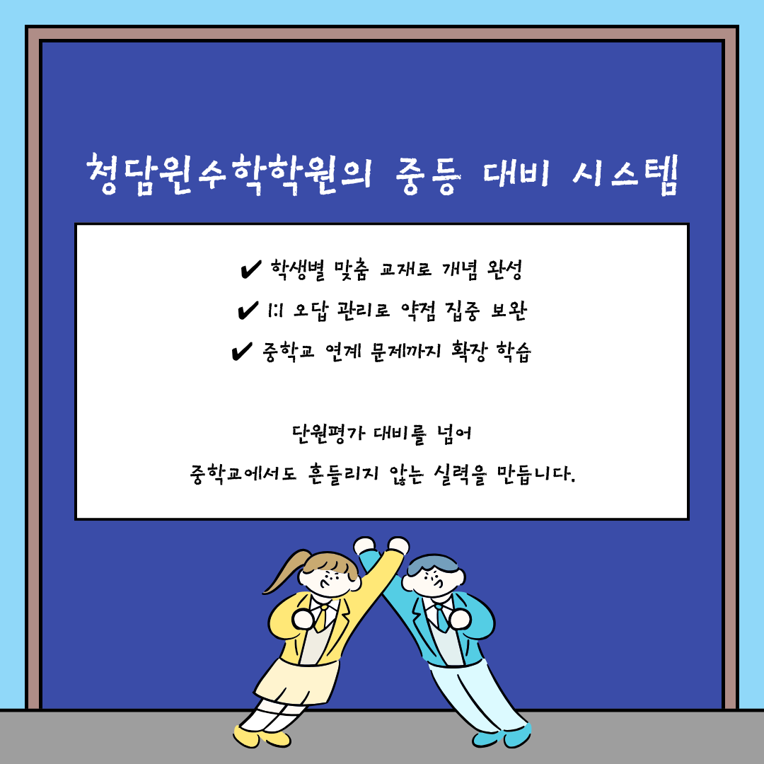 중등 수학까지 탄탄하게 연결해주는 청담윈수학학원입니다.